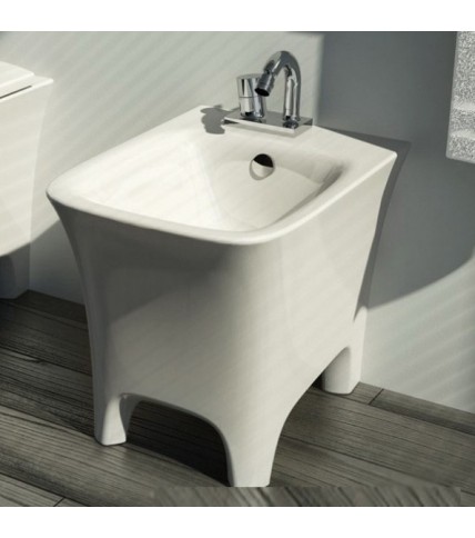 Биде напольное приставное, с одним отверстием под смеситель, цвет белый . Размер 38х52 см. Страна производитель-Италия.