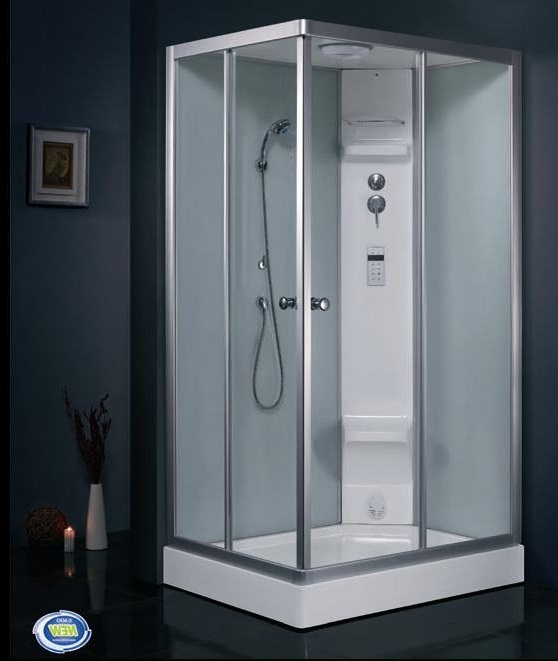 Душевая кабина, правый разворот, без пара и форсунок. Комплектация: переднее стекло матовое, серебристо-серые задние стенки, верхний душ, душевая лейка, полочка. Размер 120*90*230 см. Страна производитель-Китай.