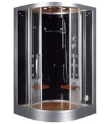 Душевая кабина, левый разворот. Деревянный вкладыш в поддон, душ, лейка на стойке, полочка, баня (3 кВт), сенсорный ПУ, термостатический смеситель; вентилятор, FM, хромотерапия, откидное сидение. Задние черные тонированные стенки (закаленное стекло) - акриловый поддон (с деревянной решеткой) -черный акриловый потолок - профиль "матовый хром" из алюминия - сенсорный пульт управления - гидромассаж - верхний душ - многофункциональная душевая лейка - функция турецкой бани - функция очистки парогенератора от накипи - ароматерапия - вытяжной вентилятор - FM-приемник - смеситель с термостатом - верхний свет - подсветка-хромотерапия в кабине (7 режимов освещения) - откидное сиденье. Размер 120*90*230 см. Страна Китай