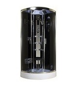 Душевая кабина, правый разворот. Деревянный вкладыш в поддон, душ, лейка на стойке, полочка, баня (3 кВт), сенсорный ПУ, термостатический смеситель; вентилятор, FM, хромотерапия, откидное сидение. Задние черные тонированные стенки (закаленное стекло) - акриловый поддон (с деревянной решеткой) -черный акриловый потолок - профиль "матовый хром" из алюминия - сенсорный пульт управления - гидромассаж - верхний душ - многофункциональная душевая лейка - функция турецкой бани - функция очистки парогенератора от накипи - ароматерапия - вытяжной вентилятор - FM-приемник - смеситель с термостатом - верхний свет - подсветка-хромотерапия в кабине (7 режимов освещения) - откидное сиденье. Размер 120*90*230 см. Страна Китай