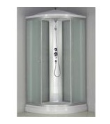 В КОРЗИНУДушевая кабина, форма 1/4 круга, задняя стенка стекло, центральная стойка пластик. Тропический душ, ручной душ, зеркало, полочка. Низкий поддон 15 см. Размер 80*80*215 см. Страна производитель-Китай.