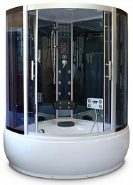 В КОРЗИНУДушевая кабина, форма 1/4 круга, задняя стенка стекло, центральная стойка стекло. Тропический душ, ручной душ, гидромассаж спины (6 форсунок), гидромассаж ног, верхний свет, лунный свет, хромотерапия, сенсорный пульт, FM-радио, вентилятор, полочка, дозатор для жидкого мыла. Высокий поддон 50 см. Размер 120*120*218 см. Страна производитель-Китай.