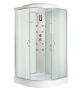 В КОРЗИНУДушевая кабина, левый или правый разворот, задняя стенка стекло, центральная стойка пластик. Тропический душ, ручной душ с регулировкой высоты, гидромассаж спины (8 форсунок), верхний свет, лунный свет, сенсорный пульт, FM-радио, вентилятор, зеркало, полочка. Низкий поддон 15 см. Размер 120*80*215 см. Страна производитель-Китай.