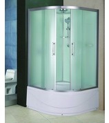 В КОРЗИНУДушевая кабина. Высокий поддон. Сифон с гидрозатвором. Стекло: 5 мм, переднее - "матовое". заднее - "белое крашеное". Комплектующие: большое овальное зеркало с фацетом, полочка со стаканчиком, смеситель, 3-х режимная душевая лейка на стойке, мыльница, двойные ролики. Модель "СRB" - угловая кабина с высоким поддоном, стеклянной крышей, верхним душем с прорезиненными соплами и вентиляционным отверстием. Размер 110*110*210 см. Страна Испания.