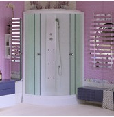 Душевая кабина, низкий поддон 16 см, переднее стекло рифленое 4 мм, заднее стекло белое, алюминевый белый профиль, латунный смеситель, тропический душ, душевая лейка с держателем, гидромассаж спины на 6 форсунок, сифон. Размер 100*100*215 см. Страна производитель-Китай.