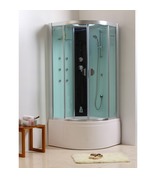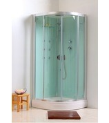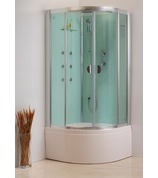 Кабина душевая, форма - трапециевидная, профиль - глянцевый анодированный, низкий поддон. Переднее стекло (5 мм) прозрачное, заднее стекло (5 мм) матовое, стальные ролики. В комплекте: смеситель, ручной душ, стойка, шланг double lock, стеклянная полка. Размер 90х90х205 см. Страна производитель-Россия.