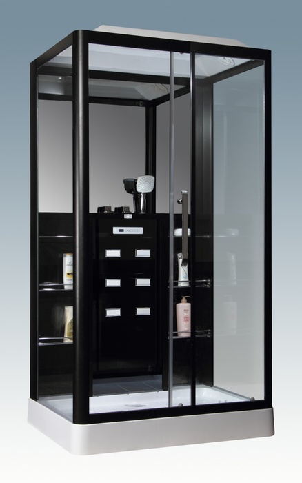 В КОРЗИНУДушевая кабина CS 127-3A R черная (правая) аналог CS-008. Алюминиевая рама, закаленное стекло 6 мм, управляется сенсорной панелью, радио, вентилятор, светильник, полка, смеситель 3 режимный смеситель, массаж ног, крыша с верхним душем, ручная лейка. Размер 90*120*215 см. Страна производитель-Китай.