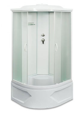 Душевая кабина, задняя стенка белая из стекла, дверцы прозрачные, центральная стойка пластик, высокий поддон 42 см, тропический душ, ручной душ, зеркало, полочка. Возможен заказ кабины с матовыми дверцами. Размер 100х100х215 см. Страна производитель-Китай.