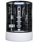 Душевая кабина. Переднее стекло тонированное, профиль матовый хром. Верхний душ, верхний свет, динамик, вентилятор, центральная стойка, пульт управления, радио, телефон, смеситель с переключением режимов, 3 г/м форсунки, штанга, ручной душ 3-х режимный, зеркало полочка, сиденье. Возможен заказ кабины с матовым стеклом. Высокий поддон 46 см со съемным экраном, сифон. Возможен заказ в размере 90*90*210 см, 100*100*210 см. Размер 80*80*210 см. Страна производитель-Китай.