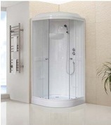 Душевая кабина. Характеристики: переднее прозрачное безопасное стекло 6 мм, задние стенки стеклянные черные. Усиленный алюминиевый профиль, подшипниковые ролики, 6 гидромассажных форсунок Clean RB, тропический душ, ручной душ, сифон. Дополнительно заказывается пульт управления и парогенератор. Возможен заказ в размере 100*100 см. Размер 90*90*217 см. Страна производитель-Россия/Германия.