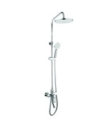 В КОРЗИНУДушевая колонна, с полкой (оргстекло), цвет - белый/хром; верхняя лейка - 1 режим, диаметр 260мм; ручная лейка - 3 режима, диаметр 115 мм; держатель для ручной лейки; шланг в оплетке из нержавеющей стали - 1,5 м; телескопическая штанга для душа - нержавеющая сталь, 841-1191мм, включение режимов осуществляется нажатием на кнопки. Страна производитель-Россия.