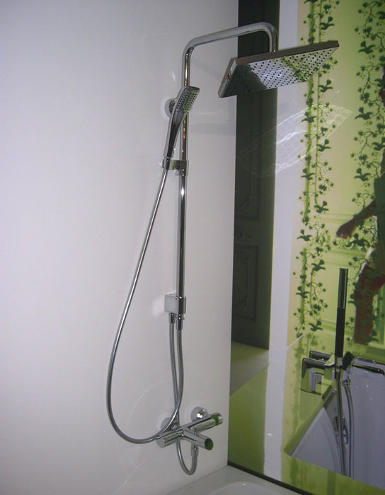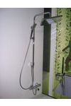 В КОРЗИНУДушевая колонна, квадратный верхний душ 27*27 см, встроенный переключатель, душевая лейка с антиизвестковым покрытием, 2 гибких душевых шланга. Страна производитель-Франция.