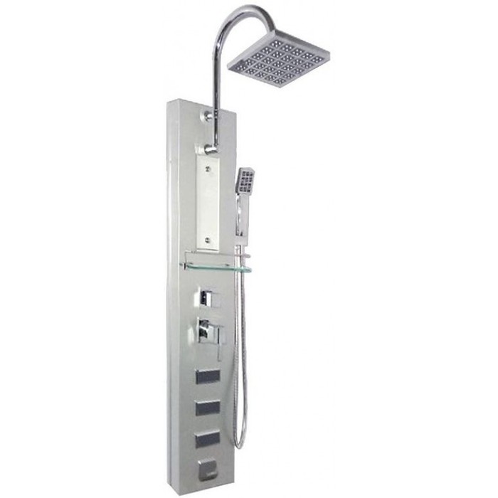 Душевая панель. Полочка, зеркало, смеситель с переключ. режимов, верхний душ, ручной душ 3-х режимный с держателем, 3 г/м форсунки, набор воды. Установка на стену или в угол. Размер 120*23 см. Страна производитель-Китай.