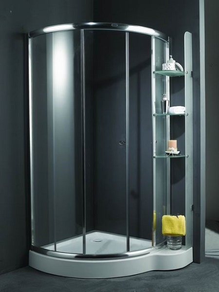 Душевое ограждение левостороннее, угловое, полки справа, тип двери: раздвижной, БЕЗ ДЕРЕВЯННОГО НАСТИЛА. Одна входная дверь, одна малая дверь для осуществления доступа к полочкам изнутри душевого ограждения, материал: безопасное закаленное стекло 6 мм, профиль: алюминиевый, три стеклянных матовых полочки толщиной 8 мм,хромированная удобная ручка, низкий акриловый поддон, сифон. ВОЗМОЖЕН ЗАКАЗ УГЛА С ДЕРЕВЯННЫМ НАСТИЛОМ. Размер 112*96,5*185 см. Страна производитель-Китай.