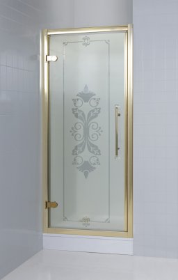 Дверь в проем левая или правая, стекло 6 мм, дверь распашная, стекло матовое с прозрачным рисунком, профиль золото. Варианты профиля: бронза или хром. Варианты стекла: прозрачное с матовым узором. Дополнительно приобретается поддон. Размер 80*195 см. Возможен заказ в размере 90*195 см. Страна производитель-Италия.