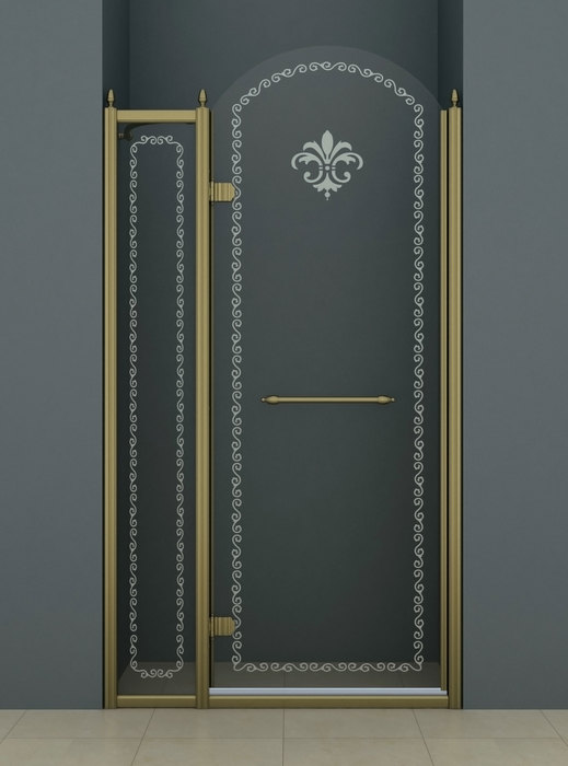 Дверь в проем распашная, левая или правая, стекло 8 мм, стекло прозрачное с матовым рисунком, профиль бронза. Варианты профиля: хром или золото. Дополнительно приобретается поддон. Размер 120*195 см. Страна производитель-Италия.