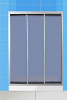 Дверь для душа 3-х секционная раздвижная (открывается влево и вправо). Стекло матовое. Профиль белый. Боковые регулировочные профили позволяют регулировать ширины двери ± 4 см от размера и компенсируют небольшие отклонения стены от вертикали. Стекло 4 мм. Размер 130*185 см. Страна производитель-Китай.