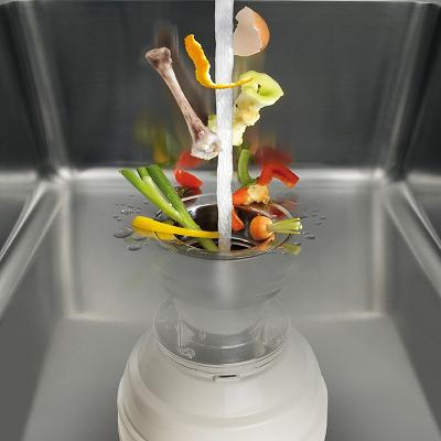 Измельчитель пищевых отходов, Мощность 780 Вт, Индукционный двигатель, Камера с антикоррозийным покрытием, Автоматическая система защиты от перегрузок 134.0253.918. Кнопка управления для измельчителя 133.0253.922. Набор для соединения измельчителя с переливом мойки 112.0277.144. Производство Италия