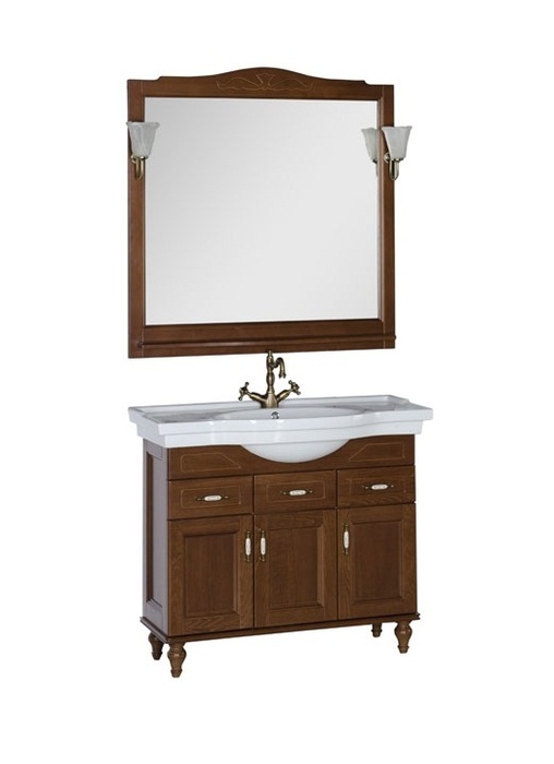 Комплект мебели: зеркало Aquanet Амелия 100, цвет орех, тумба Aquanet Амелия Н 100, цвет орех, 3 распашные дверцы, 2 выдвижных ящика, раковина Луис Shenxin 100, санфаянс, комплект светильников Луизиана. Размеры: тумба с раковиной 101*52*87 см, зеркало 100*104 см. Страна производитель-Россия.