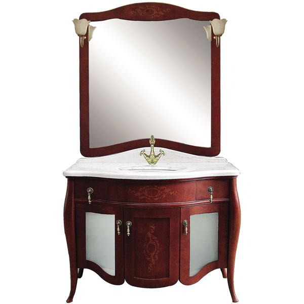 Комплект мебели: зеркало, столешница, раковина, светильники, тумба, витраж. Цвет: cerezo. Размеры тумба+столешница 109*62*86 см, зеркало 101*115 см. Страна производитель-Россия.
