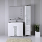 Комплект мебели: тумба с бельевой корзиной, раковина (литьевой мрамор). Материал МДФ, цвет белый. Дополнительно приобретается пенал, зеркало. Размер 90*45*89 см. Страна производитель-Россия.