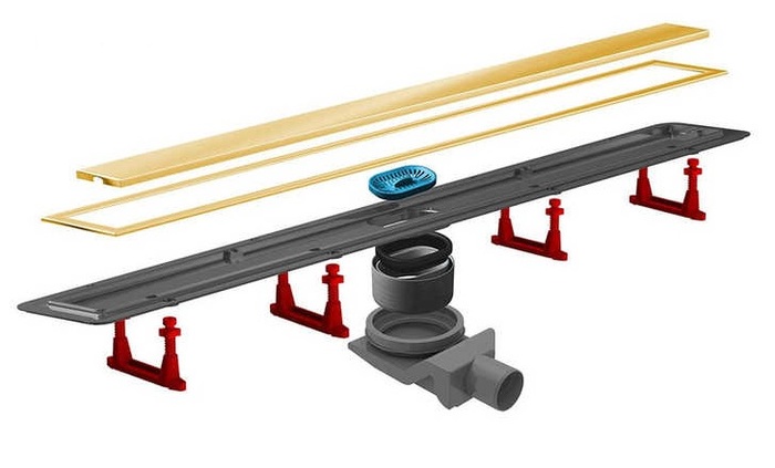 В КОРЗИНУЛинейный трап 850 мм, двухсторонняя модель - позолота 24К / полая под плитку, рамка - позолота 24К. Страна производитель-Сербия.