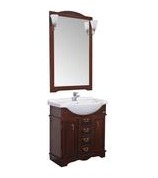 Мебель для ванной комнаты: тумба, 2 дверцы, 1 полка, керамические ручки, раковина керамическая в цвете альпийский белый R1 с покрытием ceramicplus. Возможен заказ раковины в цветах: ярко белый R2 с покрытием ceramicplus, пергамон R3 с покрытием ceramicplus. Возможен заказ тумбы в цветах шпон клена под орех или бело-серый мрамор, белый матовый лак, черный мрамор. Размер тумбы 68,5*54*75 см, размер раковины 75*58 см. Страна производитель-Германия.