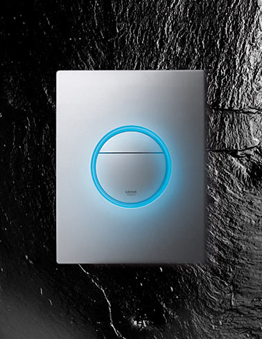 Панель смыва, 2 объема смыва или прерывание смыва старт/стоп, подсветка панели по контуру кнопки LED подсветка, индивидуальная настройка цвета подсветки кнопка вкл./выкл., таймер для индивидуального программирования подсветки, вертикальный или горизонтальный монтаж, 156 x 197 мм, хромированная поверхность. Страна производитель-Германия.