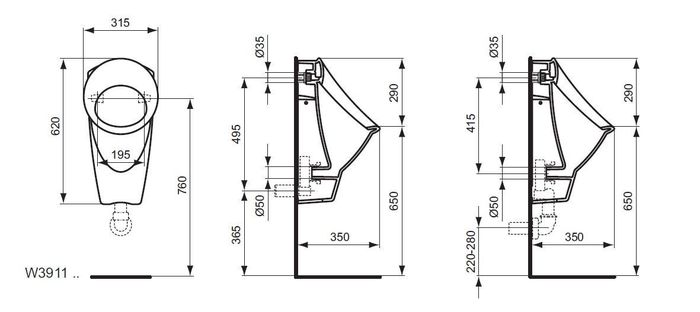 Писсуар, скрытая подводка. Дополнительно заказывается смывной механизм и сифон. Размер 31.5*35*62 см. Страна производитель-Германия.