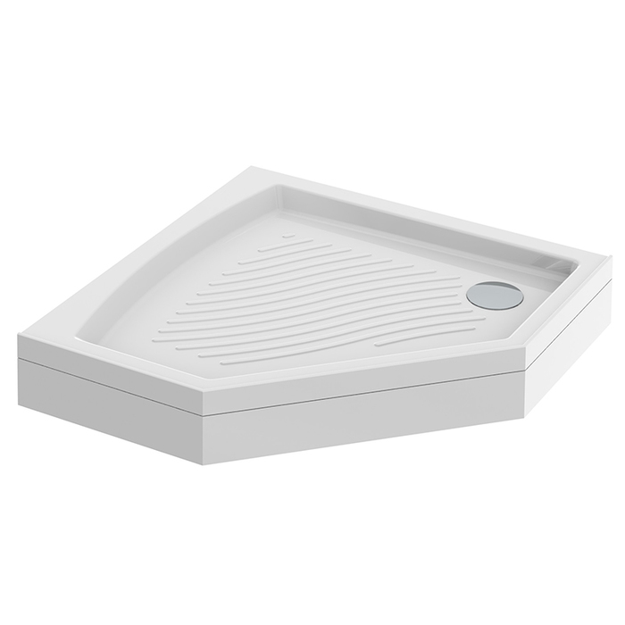 В КОРЗИНУПоддон душевой, трапециевидный, акриловый, съемный экран поддона, бортик, препятствующий переливу воды, сифон с гидрозатвором 115 мм в передней части поддона. Размер 90*90*16,5 см. Страна производитель-Россия.