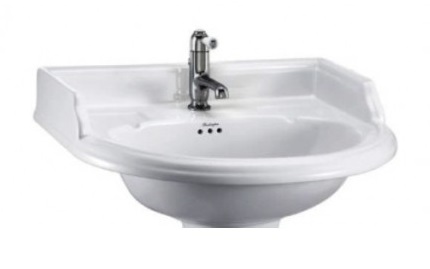 Раковина керамическая. Возможен заказ с 1 или 3 отверстиями под смеситель. Размер 65*57,5 см. Дополнительно заказывается смеситель, сифон, пьедестал. Страна Англия.