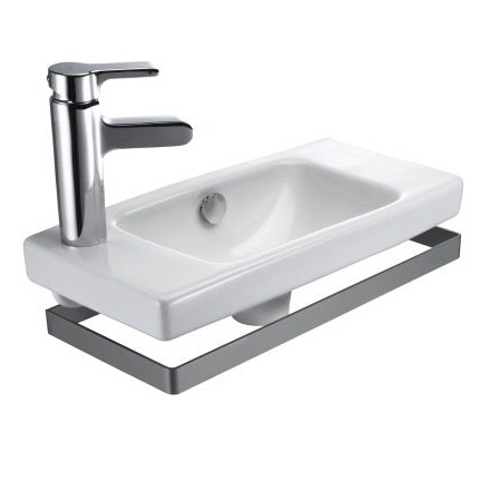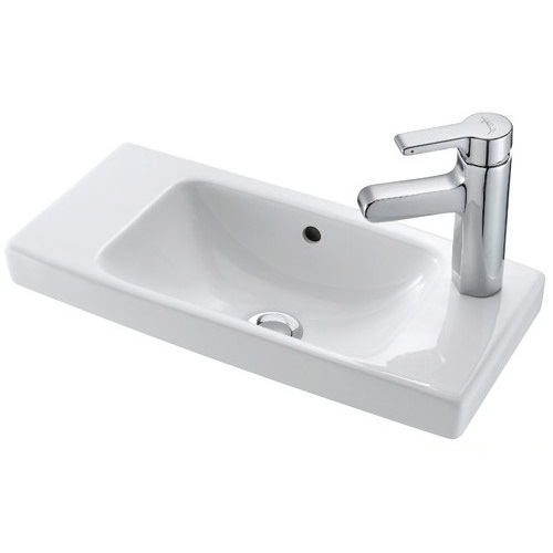 Раковина керамическая. с 2 размеченными отверстиями или с отверстием под смеситель слева или справа , без переливного отв. Белый. Дополнительно приобретается пьедестал E4722G, полупьедестал 18566W, полотенцедержатель E4721-39R. Размер 50*22 см. Страна производитель-Франция.