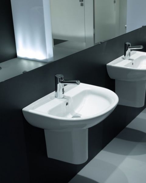 В КОРЗИНУРаковина керамическая подвесная. Дополнительно заказывается пьедестал, полупьедестал. Размер 65*50 см. Возможен заказ в размере: 55*44 см, 60*48 см. Страна производитель-Швейцария.