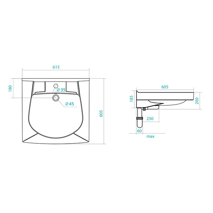 В КОРЗИНУПИЛОТ умывальник 61.5*60 см (кронштейн, крепеж, сифон). Страна Россия