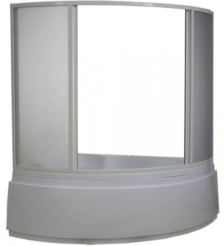 В КОРЗИНУШторка для ванны из алюминиевого профиля, окрашенного порошковой краской, с витражами из полистирола (пластик) с фактурой «Вотер». Ширина 170 см, высота 145 см. Страна производитель-Россия.