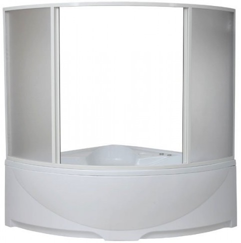В КОРЗИНУШторка для ванны из алюминиевого профиля, окрашенного порошковой краской, с витражами из полистирола (пластик) с фактурой «Вотер». Ширина 160 см, высота 145 см. Страна производитель-Россия.