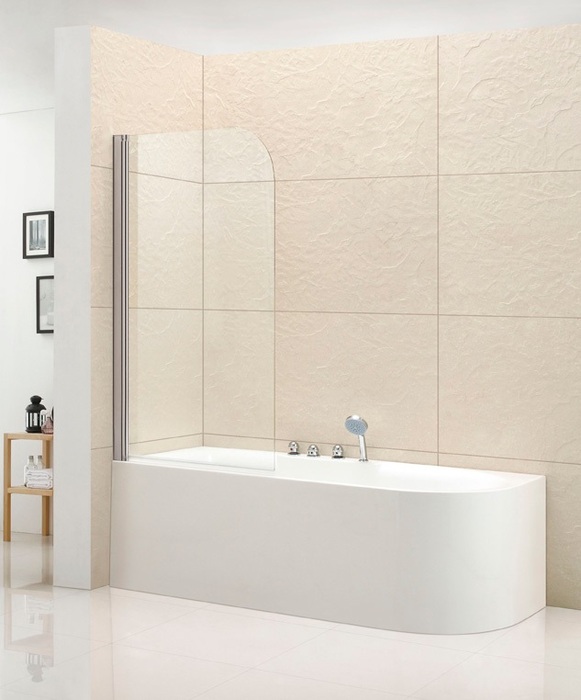 Шторка на ванну распашная. Стекло: 6 мм, прозрачное. Исполнение: хром. Размер (800-815)х1400. Италия.