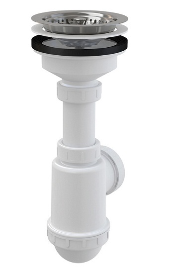 Сифон для мойки с нержавеющей peшeткой Ø115 и подводкой, арт. A446P-DN50/40 Быстрая поставка