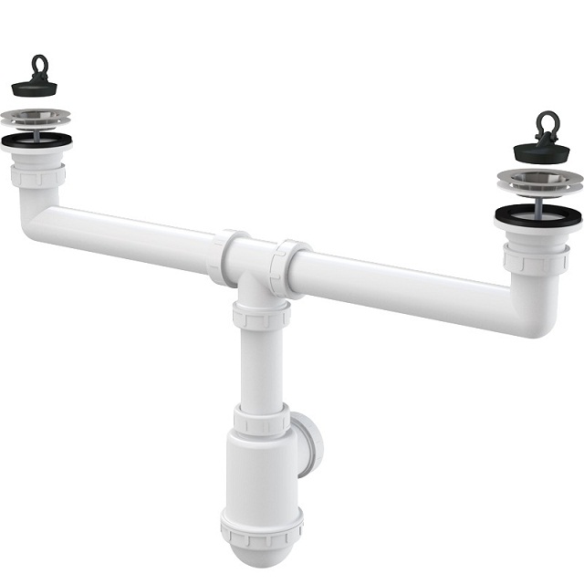 Сифон для сдвоенной мойки с нержавеющими решетками d 70 мм. Страна Чехия