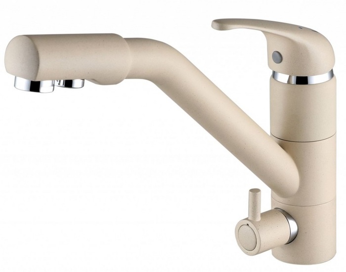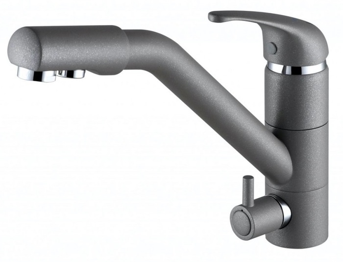 В КОРЗИНУСмеситель для кухни с функцией подключения фильтра для питьевой воды, латунь, цвет серый металлик. Возможен заказ в цвете белый матовый, шампань, антрацит, черный металлик. Страна производитель-Германия.