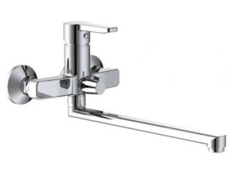 В КОРЗИНУСмеситель для ванны с длинным изливом однорычажный, латунь, никель-хромовое покрытие. Производитель-Россия.