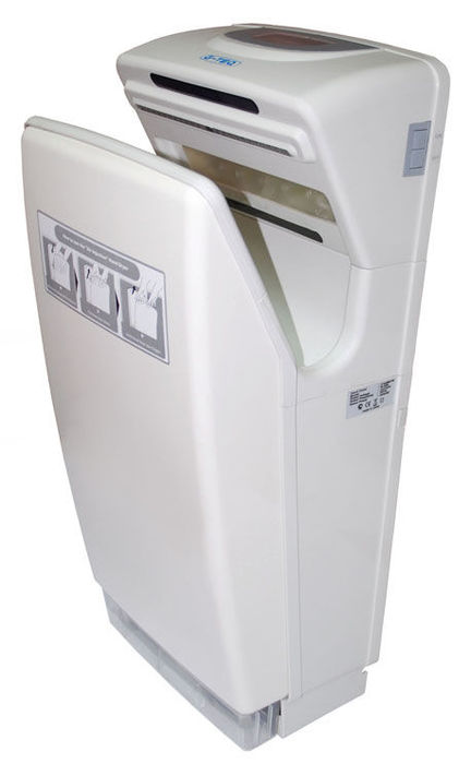 Скоростная сушилка для рук. Мощность: 2000 Вт, двигатель: 30 000 об/мин, воздушный поток: 90 м/сек, материал корпуса: пластик, цвет: белый. Ш:Г:В (сушилки): 288х245х645 мм. Вес сушилки: 11 кг. Страна производитель-Россия.