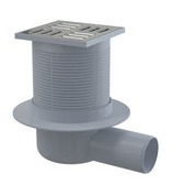 В КОРЗИНУСливной трап 105х105/50 мм, боковая подводка, решетка из нержавеющей стали, гидрозатвор мокрый. Возможен заказ с другой решеткой. Страна Чехия