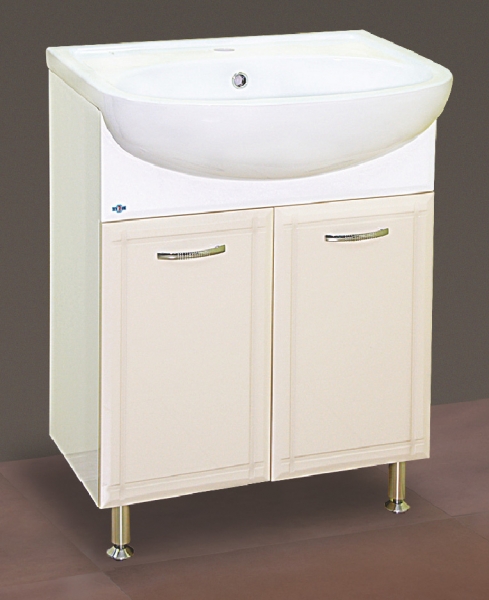 Тумба прямая с раковиной бежевая. Глубина - 310/470 мм, ширина - 600/620 мм, высота - 830 мм. Варианты размеров: 60 см, 50 см. Варианты расцветок: бежевая, бордо, голубая, салатовая. Страна производитель-Россия.