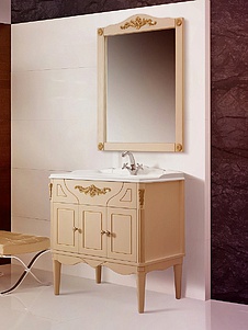 Тумба напольная с раковиной Клевер 85. Варианты цветов: слоновая кость с патиной, белый с патиной, черный с патиной. Размер 85,7х50,5х92 см. Дополнительно приобретается пенал, зеркало. Страна производитель-Беларусь/Испания.