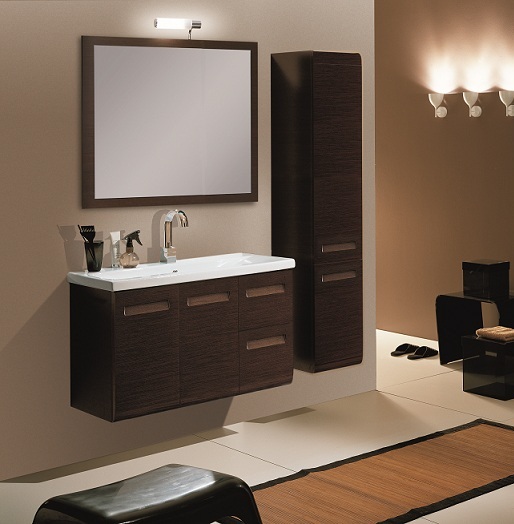 Комплект мебели для ванной комнаты: тумба, раковина. Цвета: glossy white, wenge, natural oak. Дополнительно приобретается зеркало+светильник+зеркальный шкаф. Размер тумба+раковина 100*38.5*59 см, зеркало+зеркальный шкаф-97*70 см. Страна производитель-Италия.