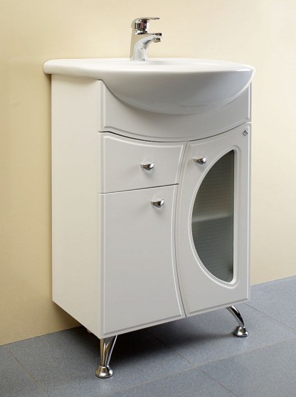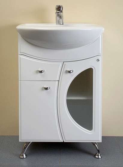 Тумба напольная, умывальник Стиль 55. Корпус: эмаль белая, фасад: эмаль белая, пленка цвет. Цвета: белый, белый+ваниль, белый+бордо, белый+синий, белый+салат, белый+сиреневый перл. Размер тумбы: 51*30*80 см. Страна производитель-Россия.