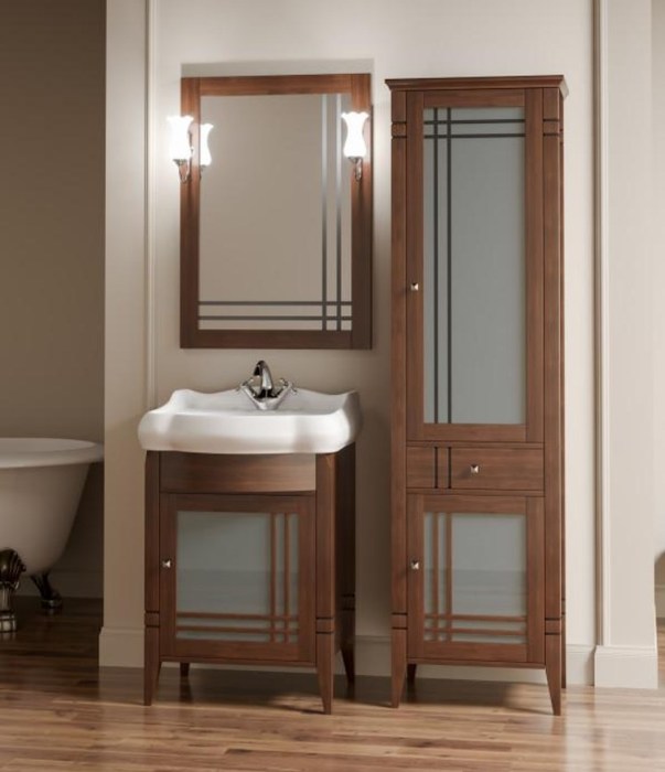 Комплект мебели включает: тумба, раковина - литьевой мрамор. Массив, цвет светлый орех. Дополнительно приобретается зеркало, пенал. Размер 60*53,5*90 см. Возможен заказ в других размерах. Страна производитель-Россия.