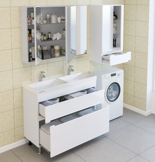 В КОРЗИНУТумба напольная с двойной раковиной Юпитер 100, 2 ящика, цвет белый. Размер 101*40*85 мм. Страна производитель-Россия.