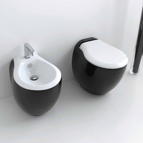 Унитаз напольный, приставной, цвет bi-colore, внутри белый, снаружи черный, вертикальный выпуск. Дополнительно заказывается сиденье. Размер 36х52 см. Страна производитель-Италия.